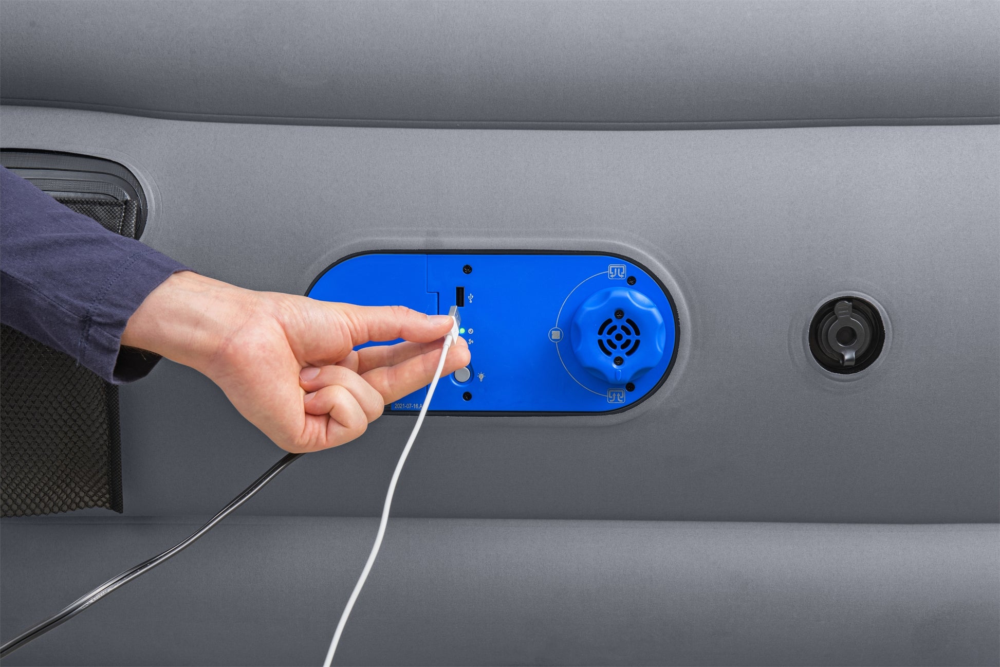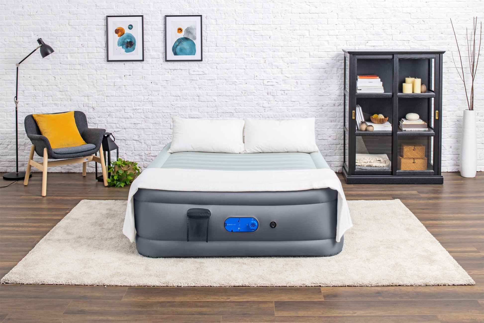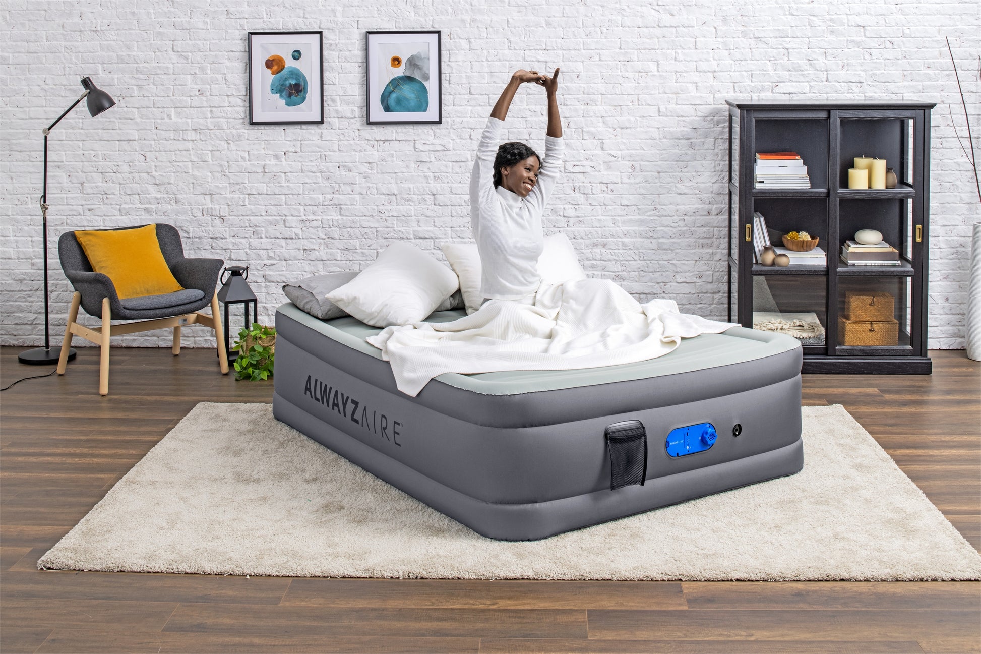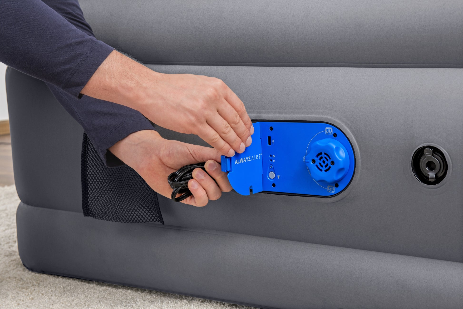- La pompe double intégrée AlwayzAire™ 110-120 V gonfle le matelas en 4 minutes.