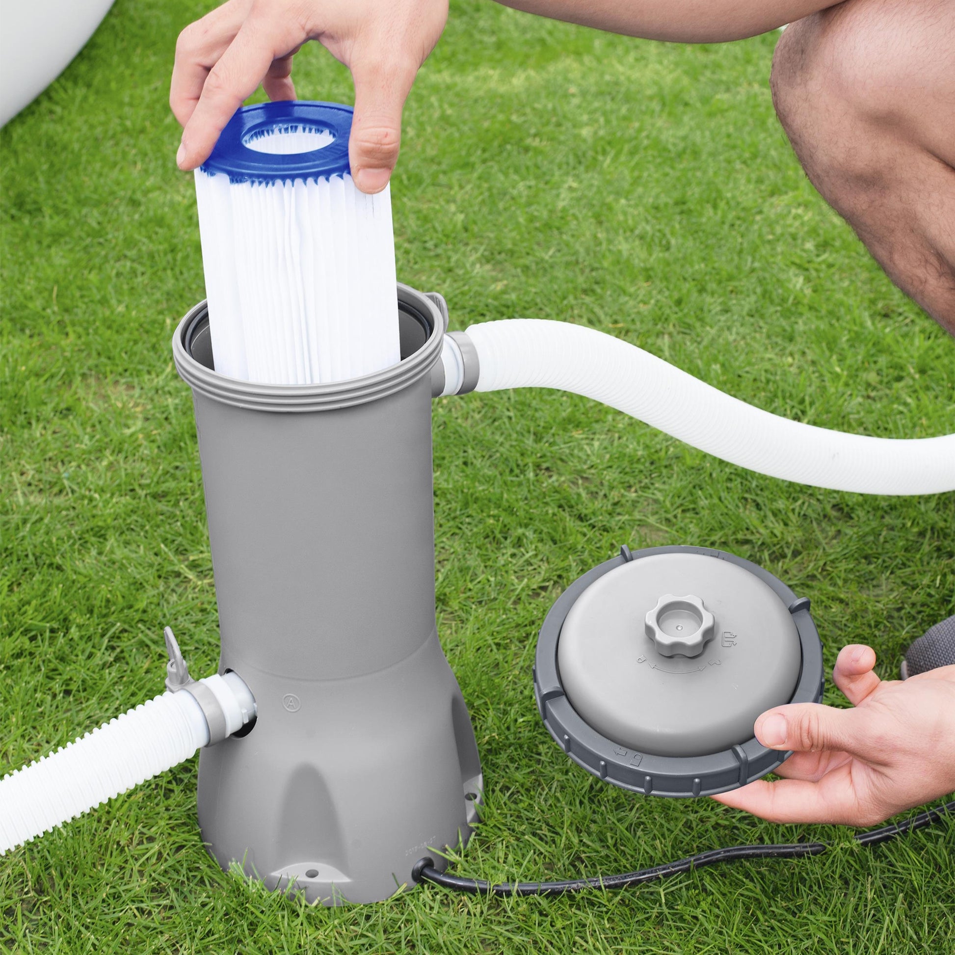 - Contents: 1 filter pump, 1 filter cartridge